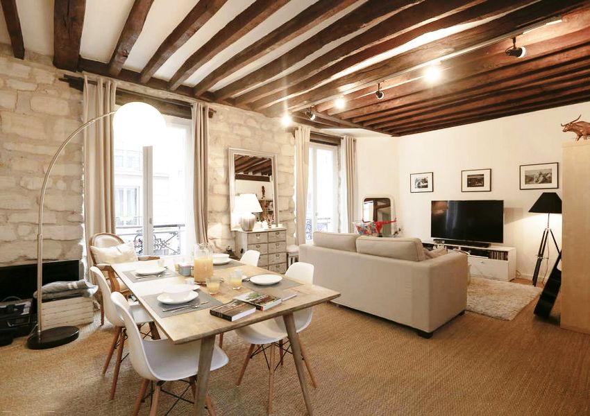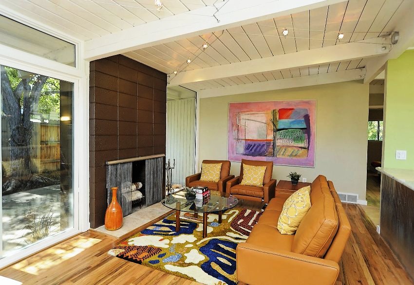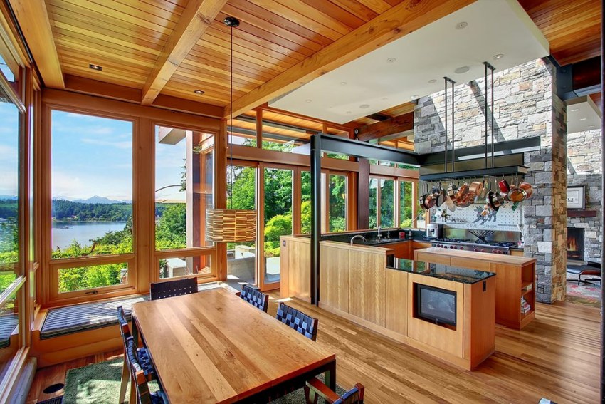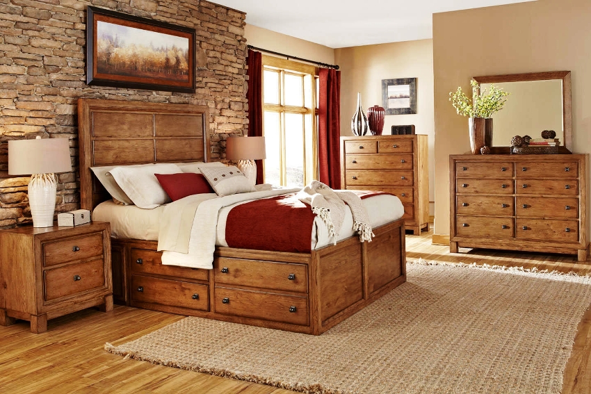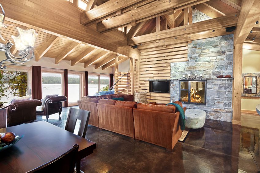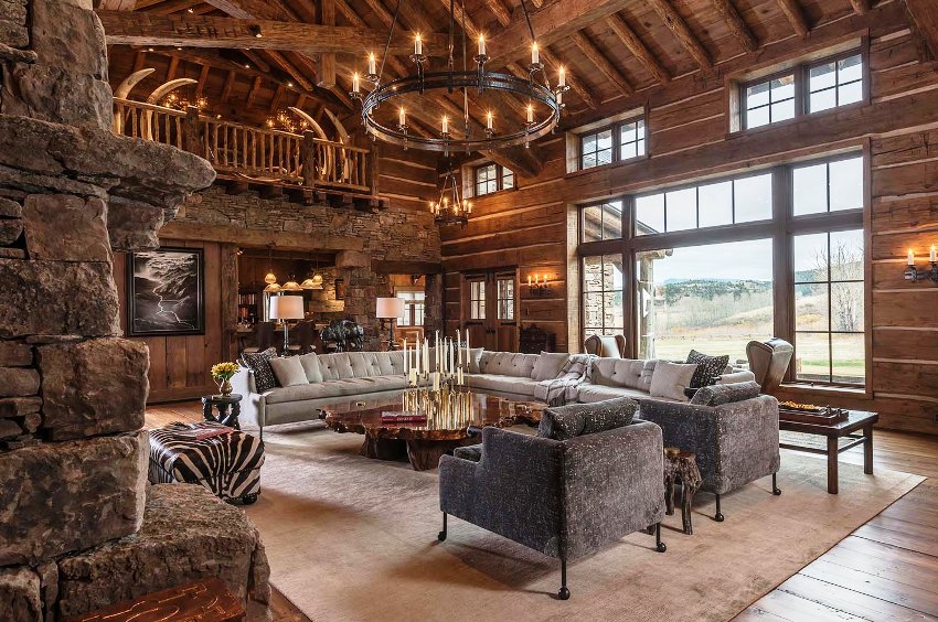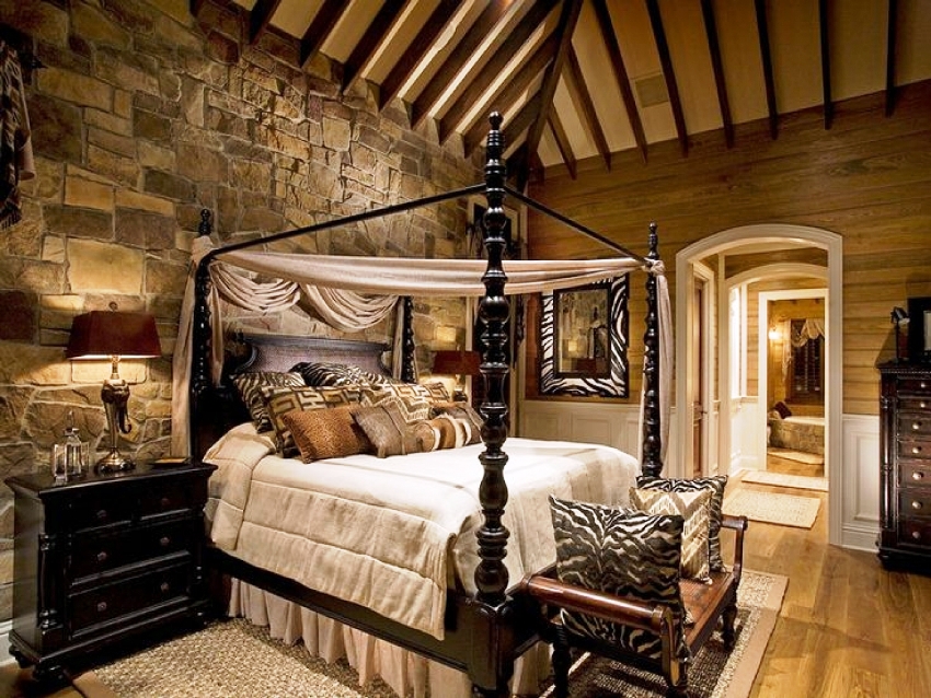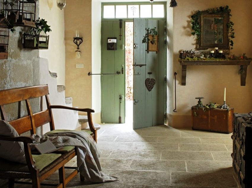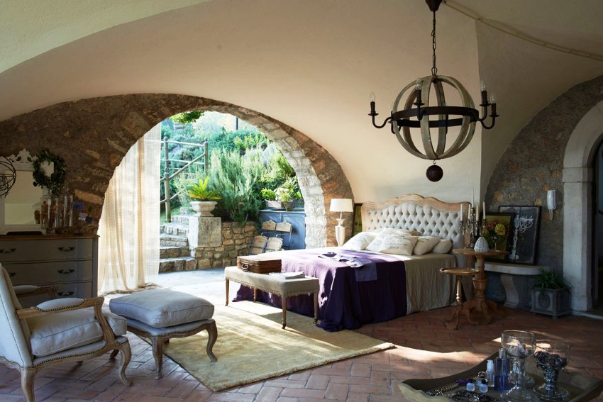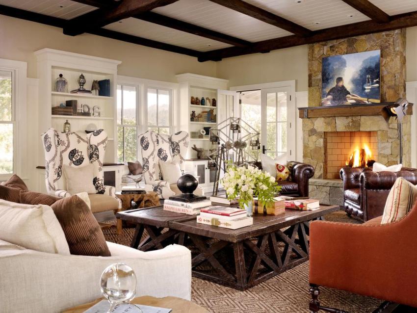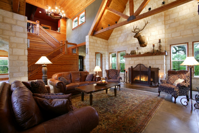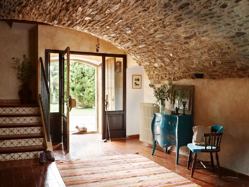 Kết thúc bằng ánh sáng và đồ nội thất có màu sắc phong phú trông hài hòa. Dầm trên trần nhà, đồ nội thất bằng gỗ, vải lanh và thảm mềm trên sàn cũng trông đẹp mắt với đồ trang trí bằng đá. Bạn có thể bổ sung một cách hiệu quả cho việc trang trí bằng các loại đèn dưới dạng đèn lồng kim loại cổ, đuốc hoặc đèn dầu.