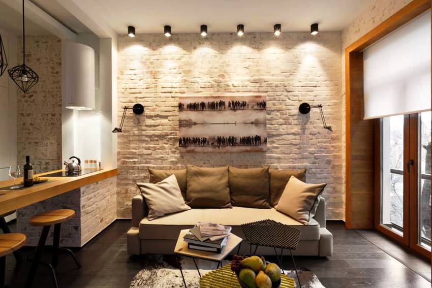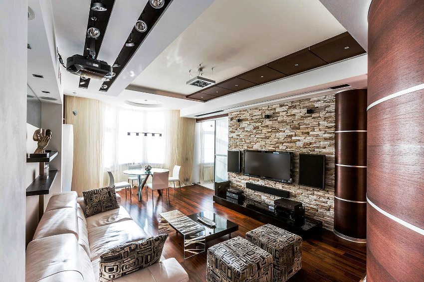 - đặt trọng âm thành thạo. Trong phòng khách, tốt hơn là làm một hoặc hai chi tiết sáng, ví dụ, một vòm, một cột hoặc một tấm trang trí;