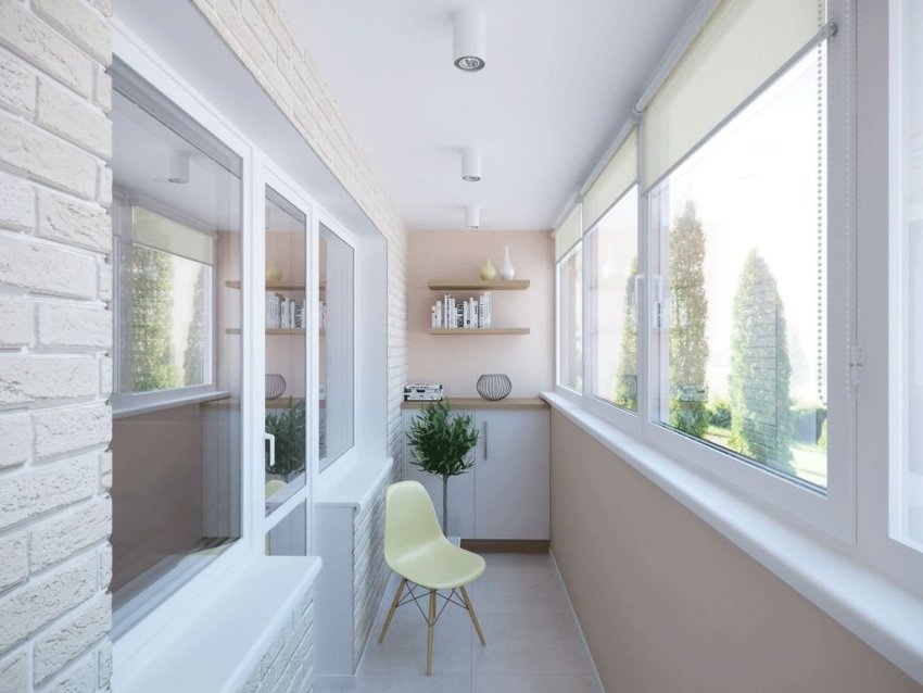 Ban công lắp kính hoặc lô gia cách nhiệt được trang trí bằng đá sẽ biến thành một nơi ấm cúng để uống trà hoặc đọc sách. Ngoài ra tại đây bạn có thể bố trí góc xanh hoặc khu vực làm việc.