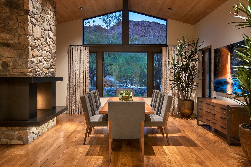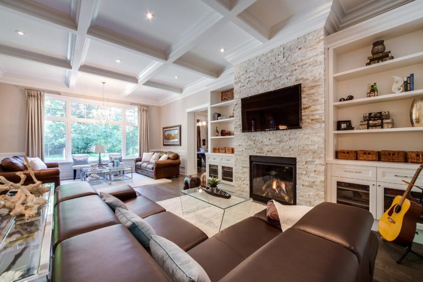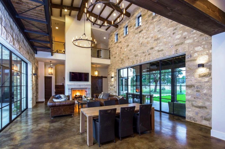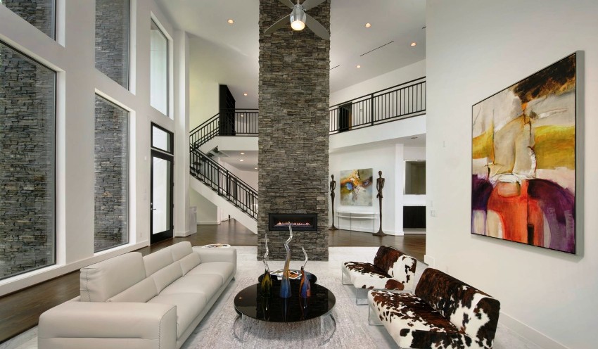 Bạn có thể thêm điểm nhấn trong nội thất với sự trợ giúp của vòm, gờ hoặc cột được trang trí bằng đá. Bạn có thể bổ sung kiểu trang trí này bằng gỗ, vải tự nhiên hoặc lông thú. Đá nhân tạo như đá granit hoặc đá sa thạch thích hợp để trang trí phòng khách hoặc nhà gỗ theo phong cách đồng quê. Thạch cao hoặc đá cẩm thạch nhẹ sẽ giúp tạo ra một sự rung cảm cổ điển, trong khi gạch trông phù hợp với phong cách tối giản hoặc kiểu gác xép.