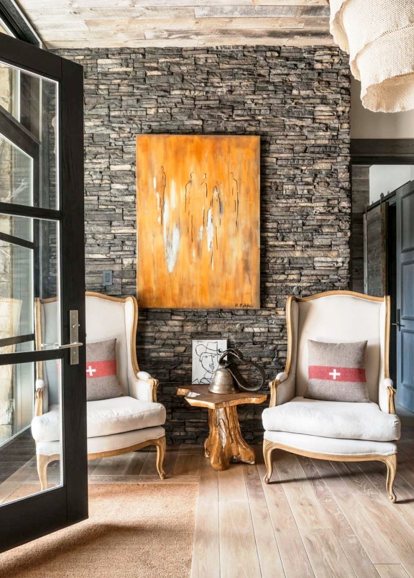 - sự kết hợp thành công giữa đá với các vật liệu khác. Đá ốp nên phù hợp với kết cấu của tường, trần và sàn. Ngoài ra, cửa ra vào, cửa sổ, ván chân tường, đồ nội thất và phụ kiện phải được kết hợp hài hòa với đá;