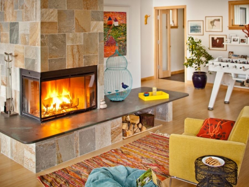 Đá trang trí không thể thiếu khi đối diện với một lò sưởi đang hoạt động, vì nó truyền nhiệt của ngọn lửa ra không gian xung quanh một cách tốt nhất