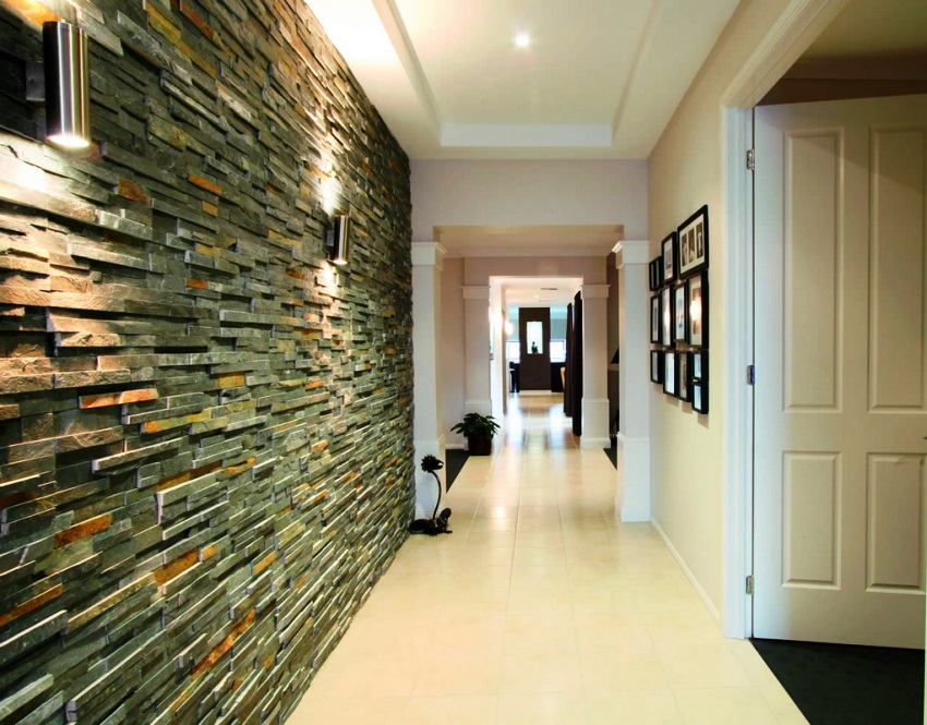 Trang trí phòng khách và hành lang bằng đá trang trí, ảnh nội thất