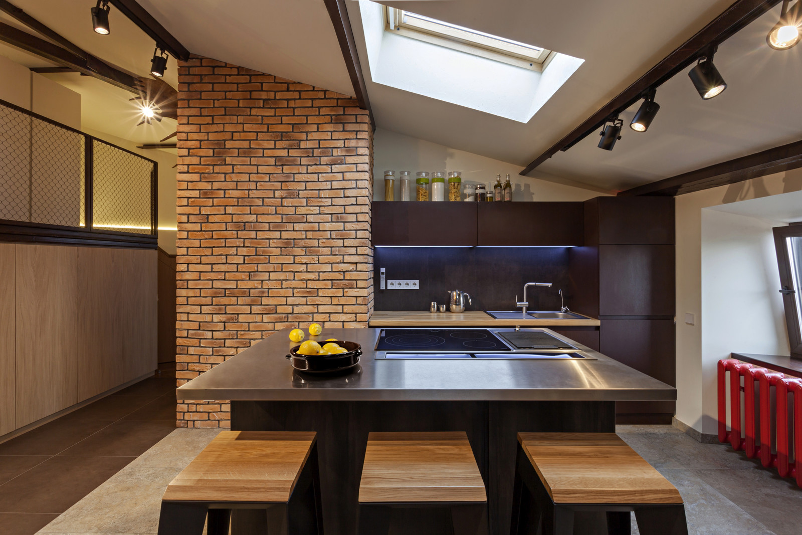 Nhà bếp chính xác là nơi mà đá nhân tạo sẽ giúp tạo ra một thiết kế ban đầu. Đá trang trí trong nhà bếp trông rất đẹp, ngoài ra, việc sử dụng vật liệu thành thạo sẽ giúp nhấn mạnh những ưu điểm của căn phòng. Khối xây ngang mở rộng một căn phòng nhỏ, trong khi khối xây dọc thu hẹp nó. Bạn có thể trang trí cả bức tường và từng phần riêng lẻ của nhà bếp.