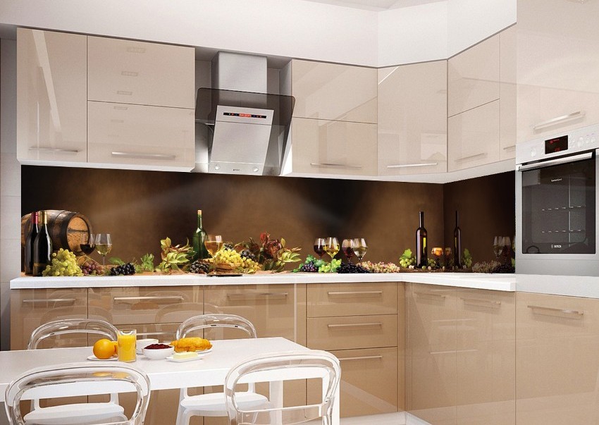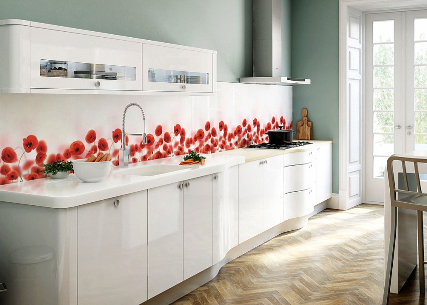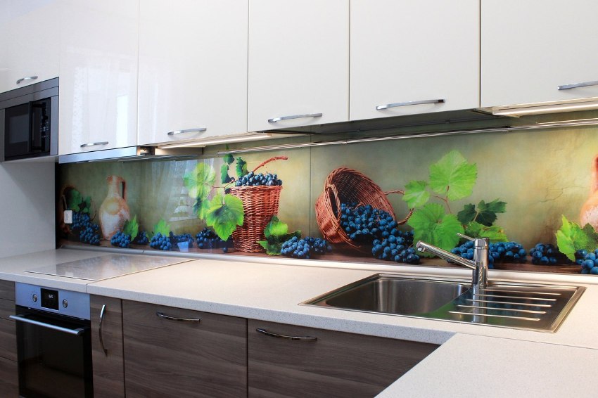 Tùy chọn phổ biến nhất trong danh sách bảng này có in ảnh. Ví dụ, một chiếc tạp dề bằng thủy tinh với hình ảnh những trái cây mọng nước sẽ tạo thêm sự lạc quan và ấm áp cho căn phòng.