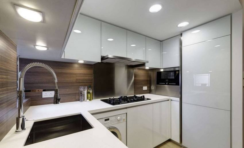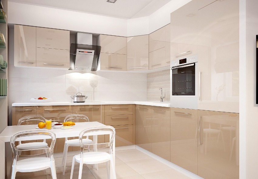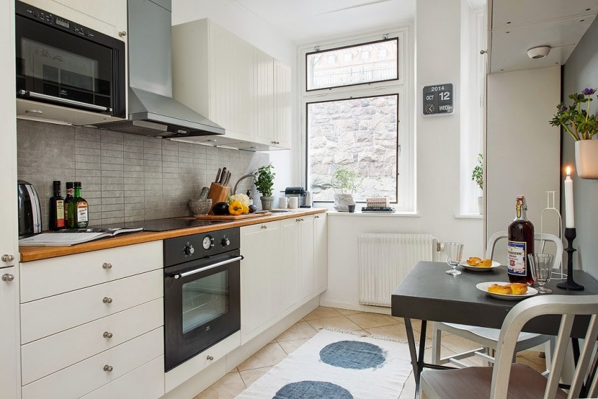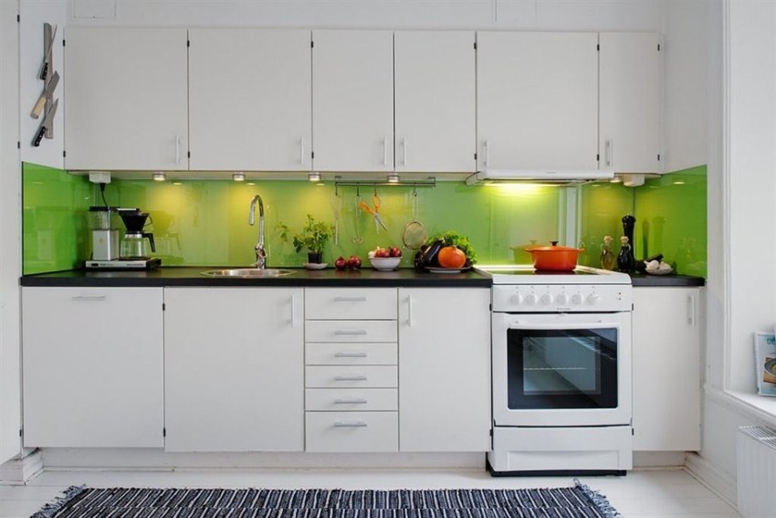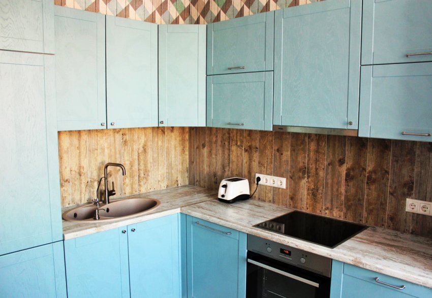 - Tính thực tế của tấm tường. Nhà bếp với tạp dề như vậy không cần chăm sóc đặc biệt và giặt thường xuyên; cũng không cần chất tẩy rửa đặc biệt.