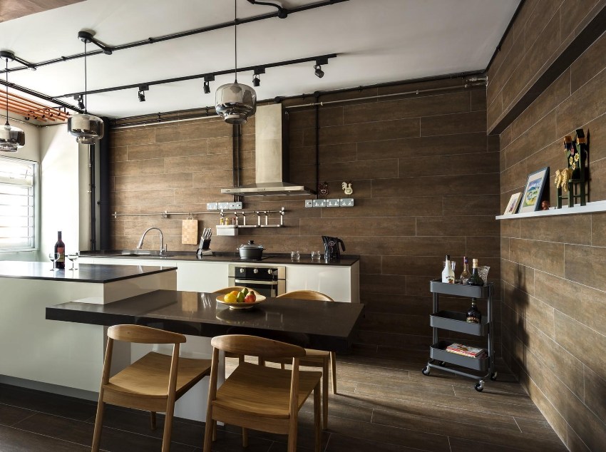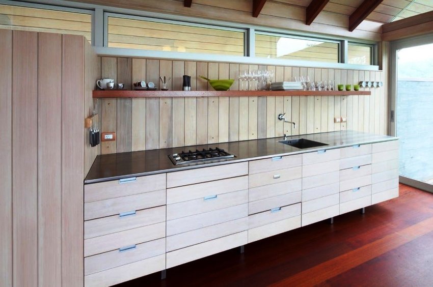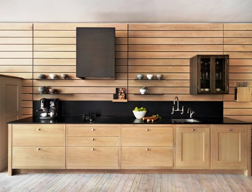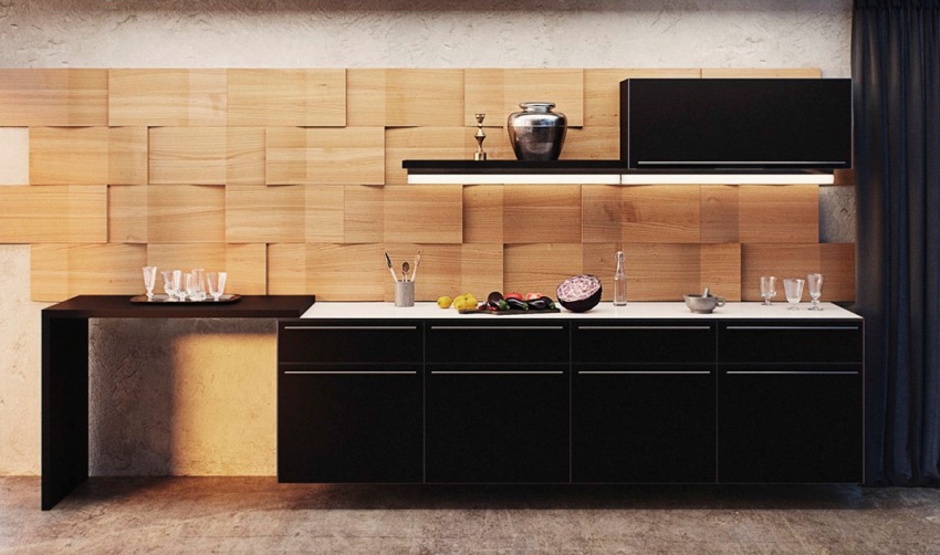 Tấm ốp tường bằng gỗ cho nhà bếp sẽ tạo ra sự ấm cúng trong ngôi nhà và không bị mất đi sự phù hợp theo thời gian
