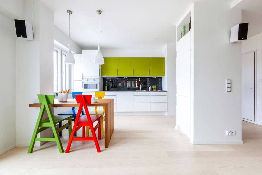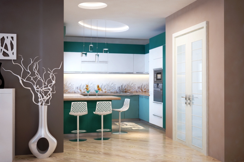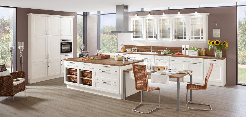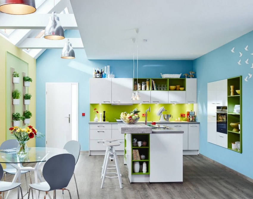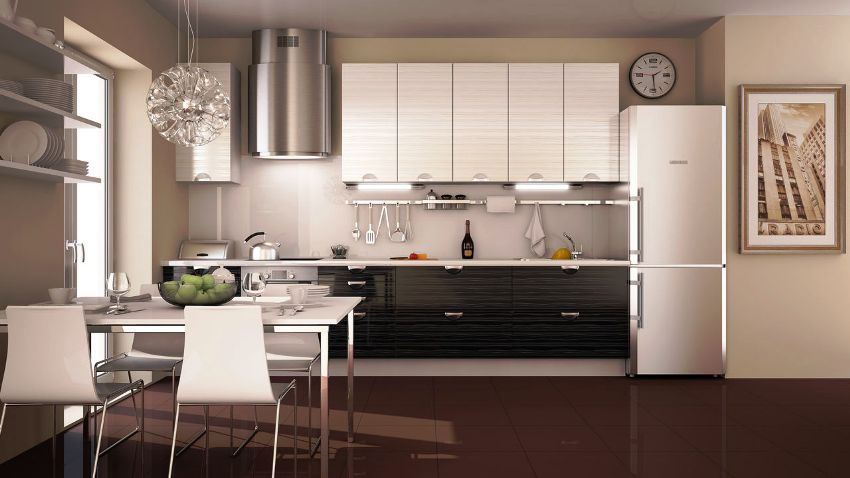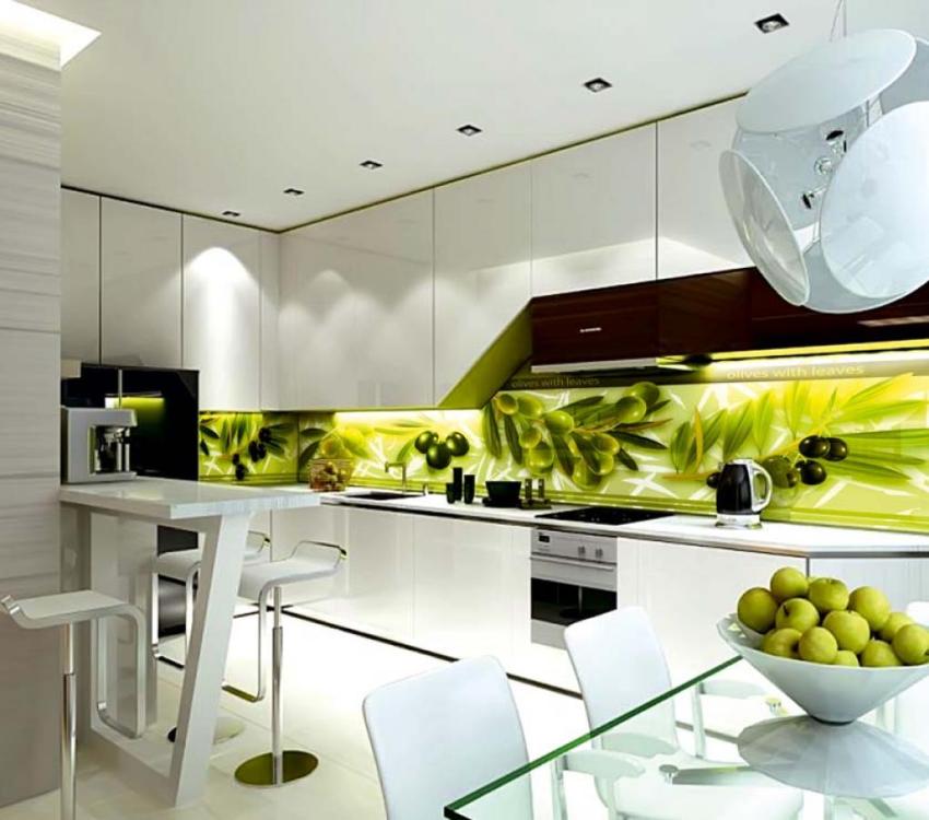 Một bảng màu trắng sữa sẽ hoàn toàn phù hợp với một bộ màu trắng kết hợp với các thiết bị tối màu. Trong nhà bếp màu trắng, một bức ảnh in mô tả thành phố vào ban đêm sẽ trông rất tuyệt. Một bảng điều khiển màu đen tuyền sẽ tăng thêm vẻ khắc khổ cho nội thất và một chiếc tạp dề sáng màu sẽ khiến bạn vui lên. Hình ảnh những bông hoa sẽ tạo không khí mùa xuân trong nhà bếp, và cảnh biển sẽ có lợi cho sự thư thái.