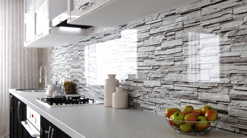Danh sách các đặc điểm thực tế gần như hoàn toàn tương ứng với các tấm tường cho nhà bếp. Hình ảnh những chiếc tạp dề được thiết kế theo cách này thể hiện rõ đặc tính thẩm mỹ tuyệt vời của loại vật liệu này. Hơn nữa, thị trường hiện đại cung cấp nhiều loại sản phẩm.