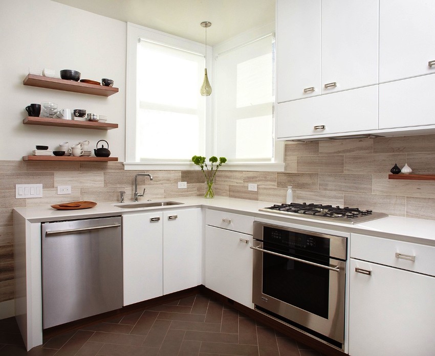 - Chúng trông giống như gạch. Chúng được sản xuất dưới dạng hình vuông hoặc hình chữ nhật, với độ dài các cạnh khác nhau. Gạch ốp tường cho nhà bếp chủ yếu đóng vai trò thay thế cho mặt bàn bằng sứ.