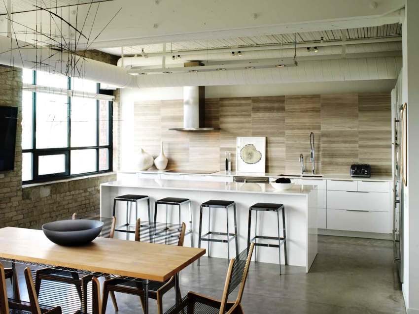 Lời khuyên hữu ích! Để tạo ra một nội thất kiểu gác xép lý tưởng và đồng thời tiết kiệm chi phí, bạn có thể sử dụng các tấm gạch nhựa. Vật liệu không chỉ có thể bao phủ tạp dề mà còn là một trong những bức tường của nhà bếp.
