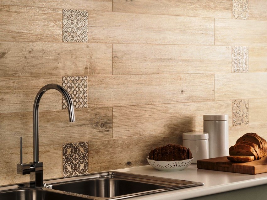 Lời khuyên hữu ích! Những người không thể từ bỏ hoàn toàn các tấm gỗ sang trọng nên loại trừ việc lắp đặt chúng trong khu vực nấu nướng. Để thực tế, các tấm gỗ có thể được kết hợp với gạch men hoặc ốp da phía sau bồn rửa và bếp nấu.