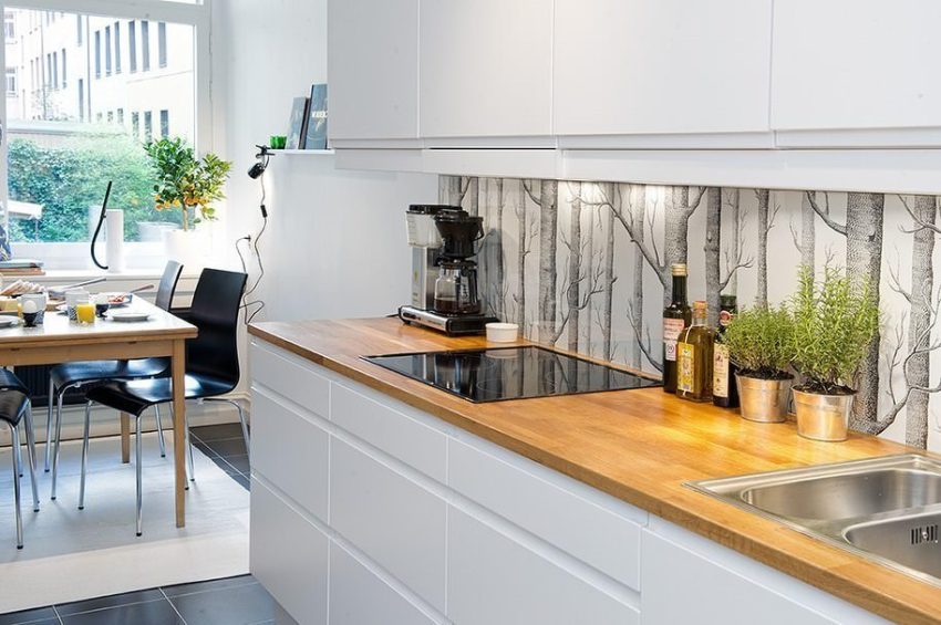 Lời khuyên hữu ích! Nếu nhiệm vụ là tạo ra một nền sáng và thiết thực trên bức tường làm việc, thì việc in ảnh sẽ giúp giải quyết vấn đề đó. Vì vậy, bạn không nên bỏ qua chất lượng và từ chối lựa chọn này vì giá thành của loại hoàn thiện này rất cao.