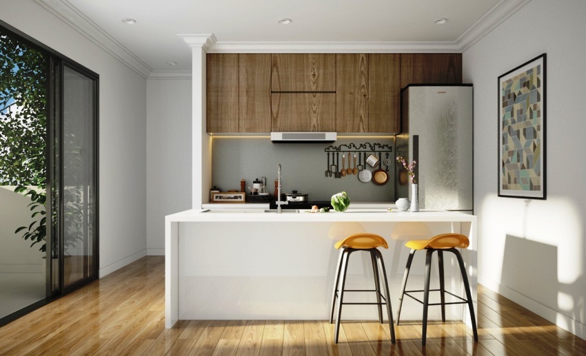 - Tính thẩm mỹ. Mảng tường trang trí nội thất phòng bếp sẽ giúp tổng thể thiết kế đẹp và độc đáo.