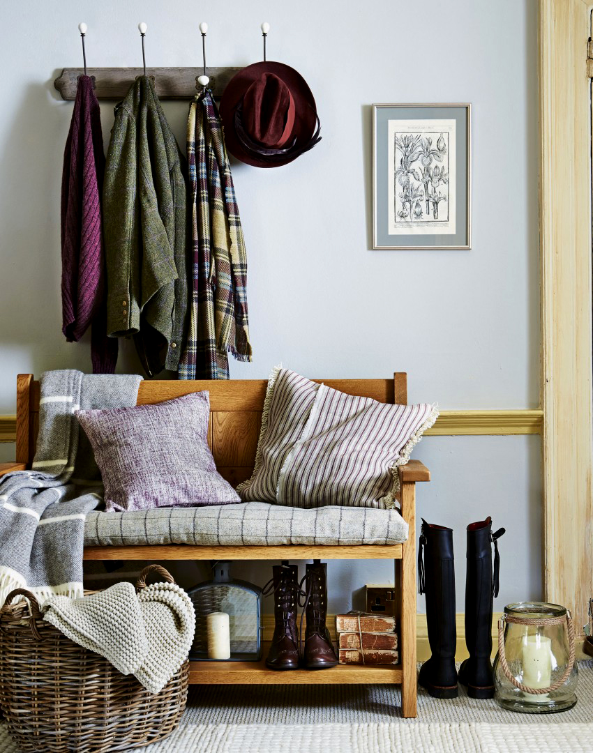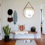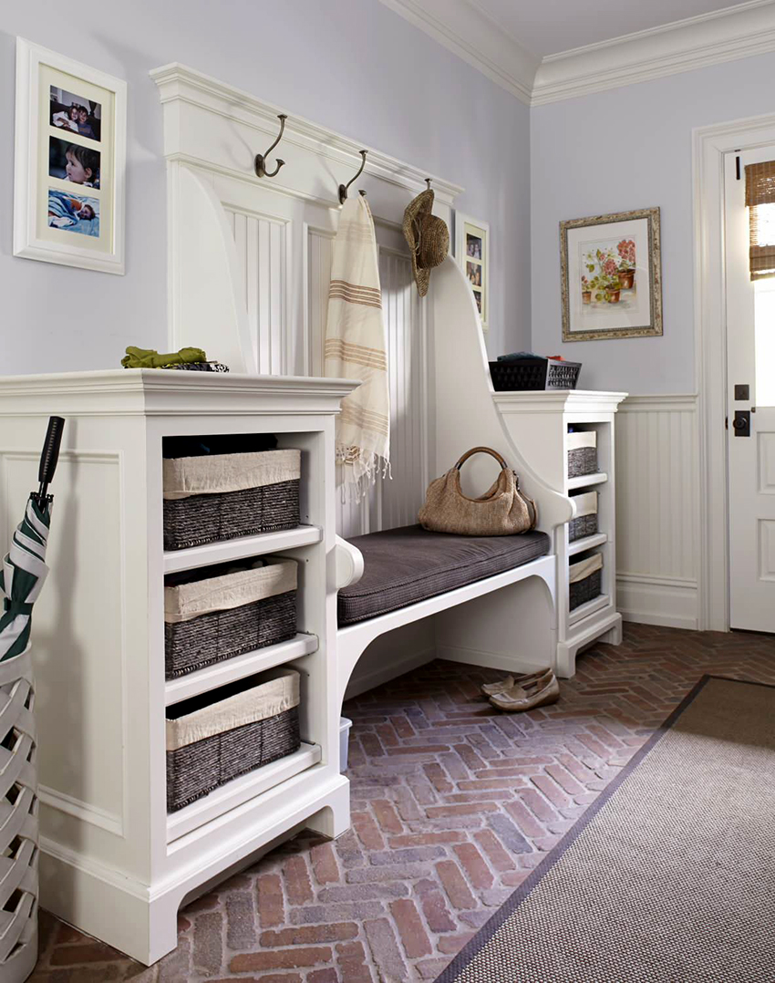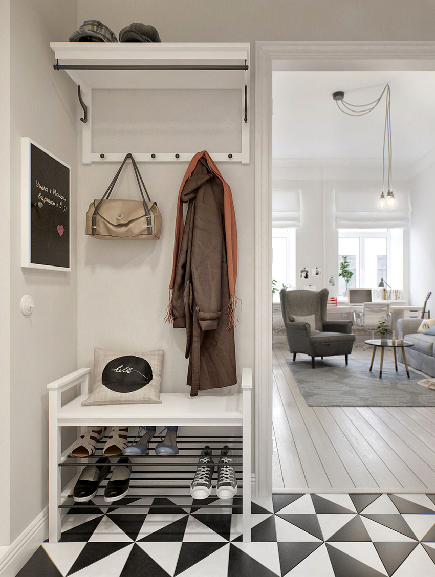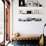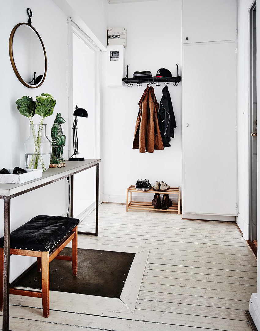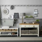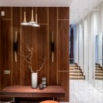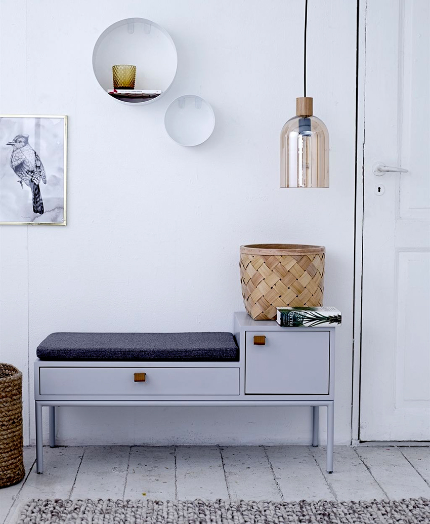 Bàn tiệc ở hành lang với chỗ ngồi và giá để điện thoại hoặc máy tính bảng là phù hợp nhất cho một người hiện đại. Một giải pháp nhỏ gọn và thiết thực là sản phẩm có giá để giày. Cấu tạo gồm một băng ghế dài, bên dưới có giá để giày dép dạng kệ mở hoặc trang bị cánh cửa bản lề đóng giá treo mini. Lựa chọn đầu tiên phù hợp với những hành lang hẹp. Bạn cũng có thể chọn mẫu có kệ giày gấp hiện đại.