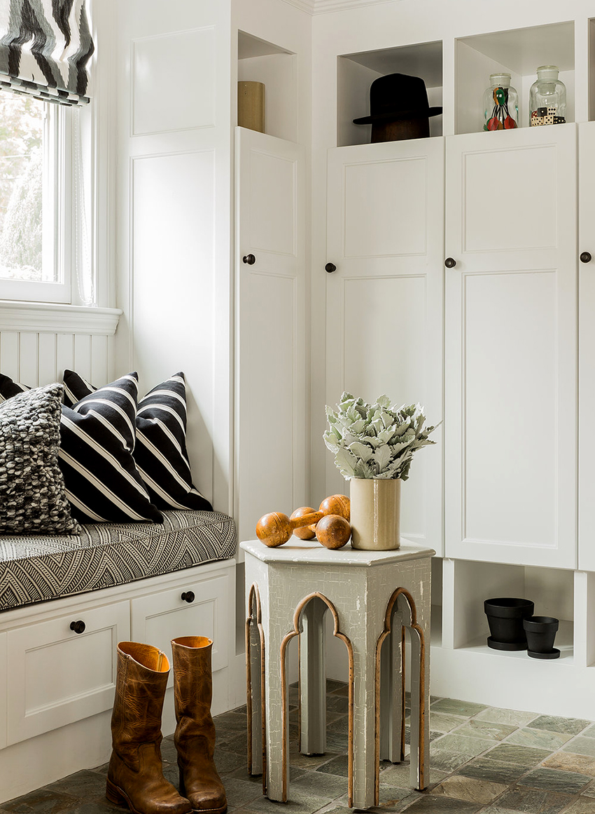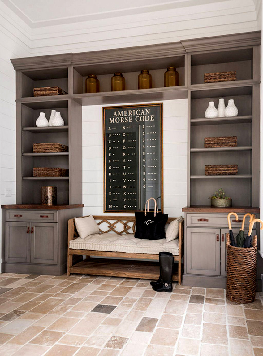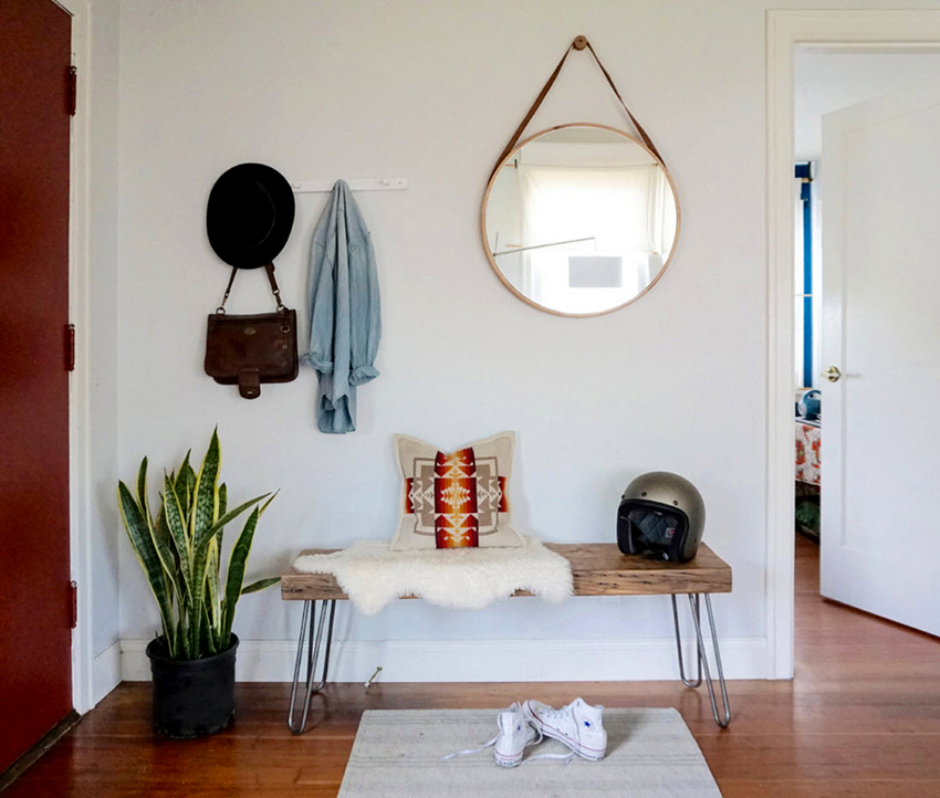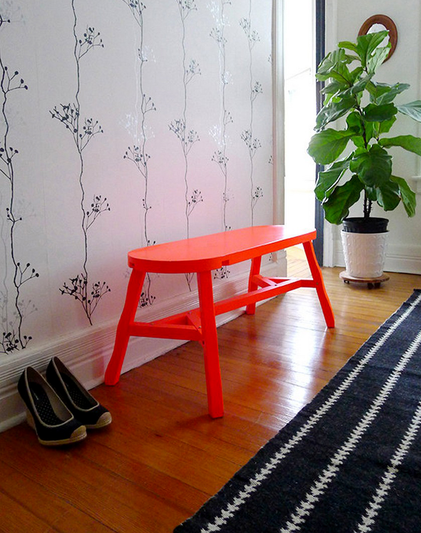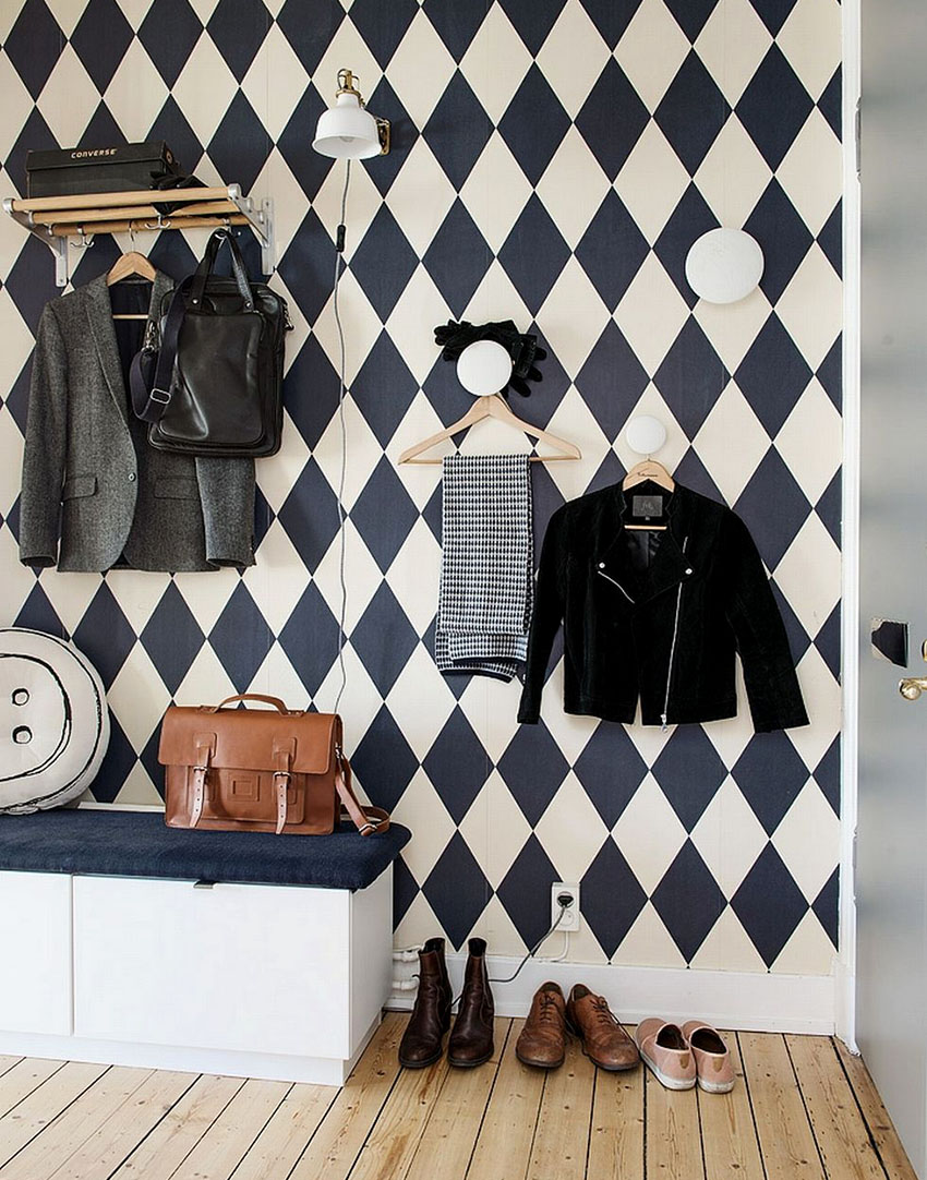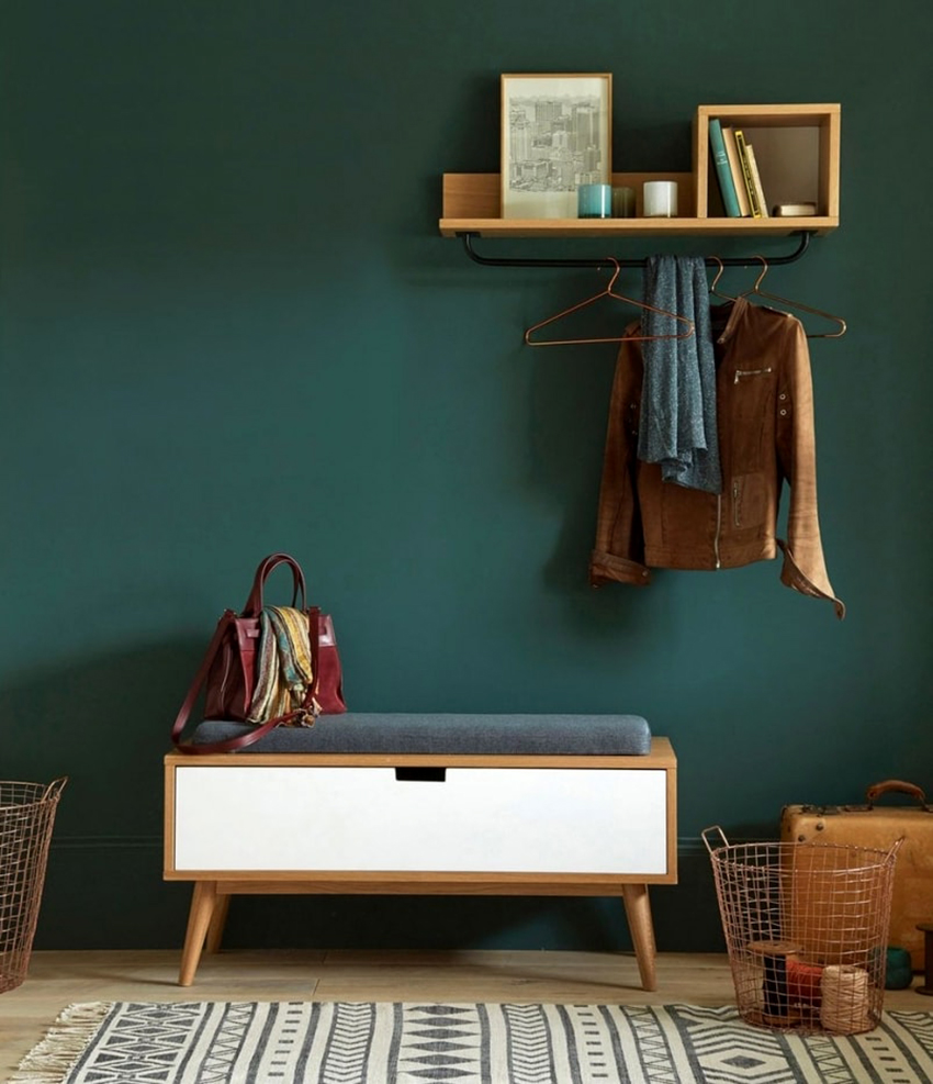 Bàn tiệc ở hành lang với chỗ ngồi và giá để điện thoại hoặc máy tính bảng là phù hợp nhất cho một người hiện đại. Một giải pháp nhỏ gọn và thiết thực là sản phẩm có giá để giày. Cấu tạo gồm một băng ghế dài, bên dưới có giá để giày dép dạng kệ mở hoặc trang bị cánh cửa bản lề đóng giá treo mini. Lựa chọn đầu tiên phù hợp với những hành lang hẹp. Bạn cũng có thể chọn mẫu có kệ giày gấp hiện đại.