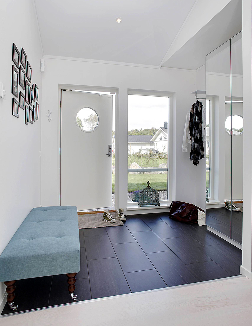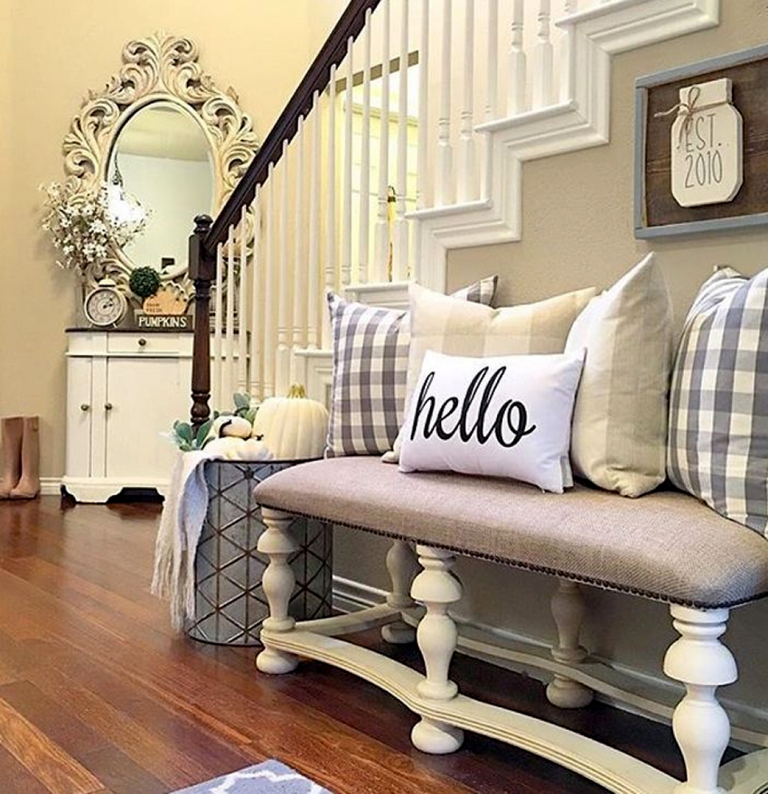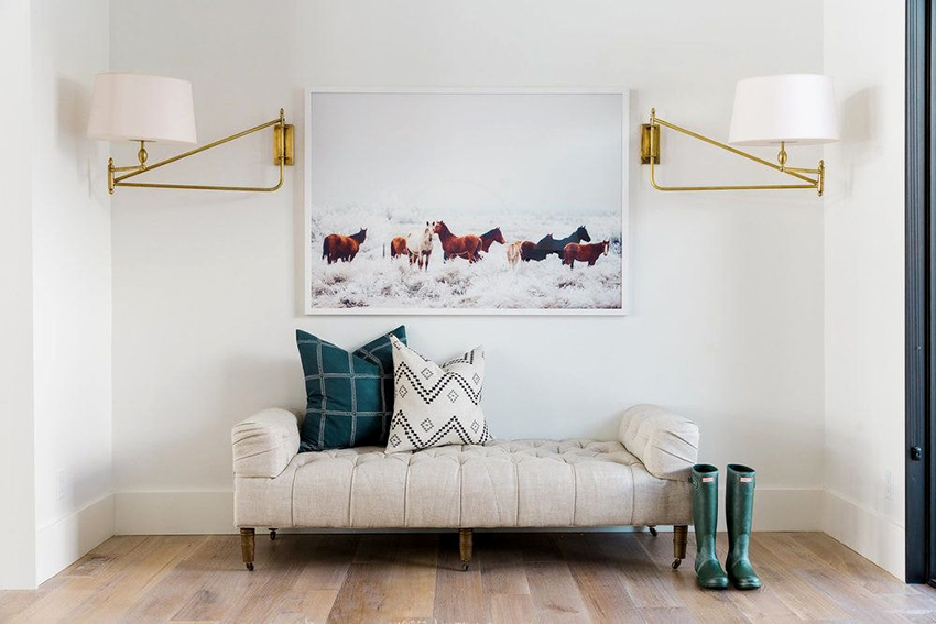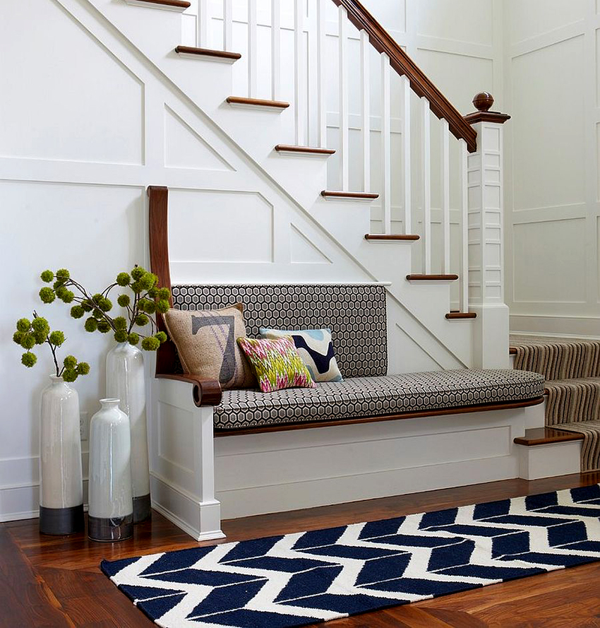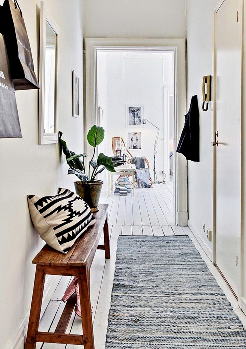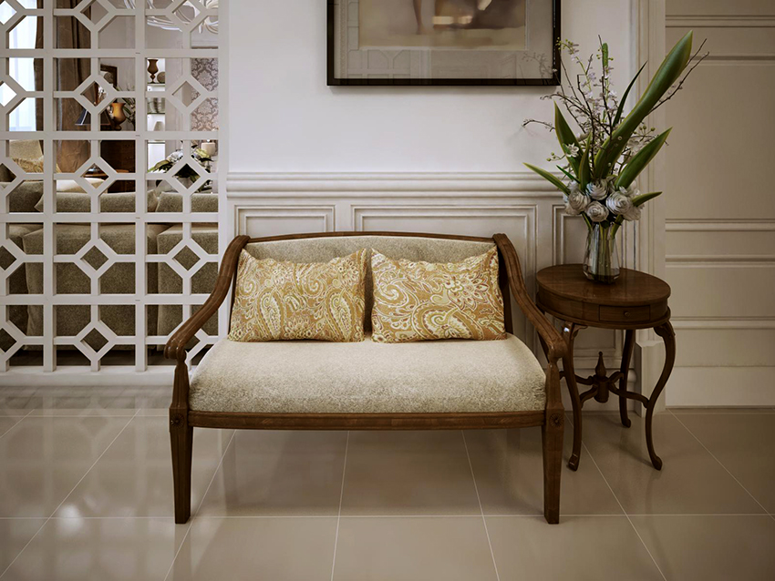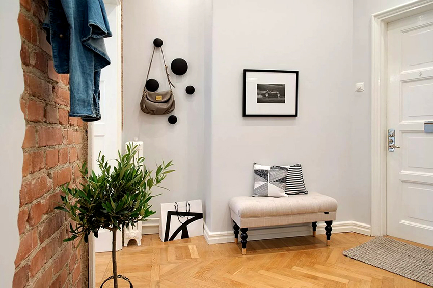 Thiết thực nhất là sản phẩm có vải bọc tối màu.Tuy nhiên, một chiếc ghế dài màu trắng ở hành lang sẽ tạo thêm sự ấm cúng trong phòng, mở rộng nó về mặt thị giác. Nó trông sẽ bớt cồng kềnh hơn, rất hữu ích cho những hành lang nhỏ.