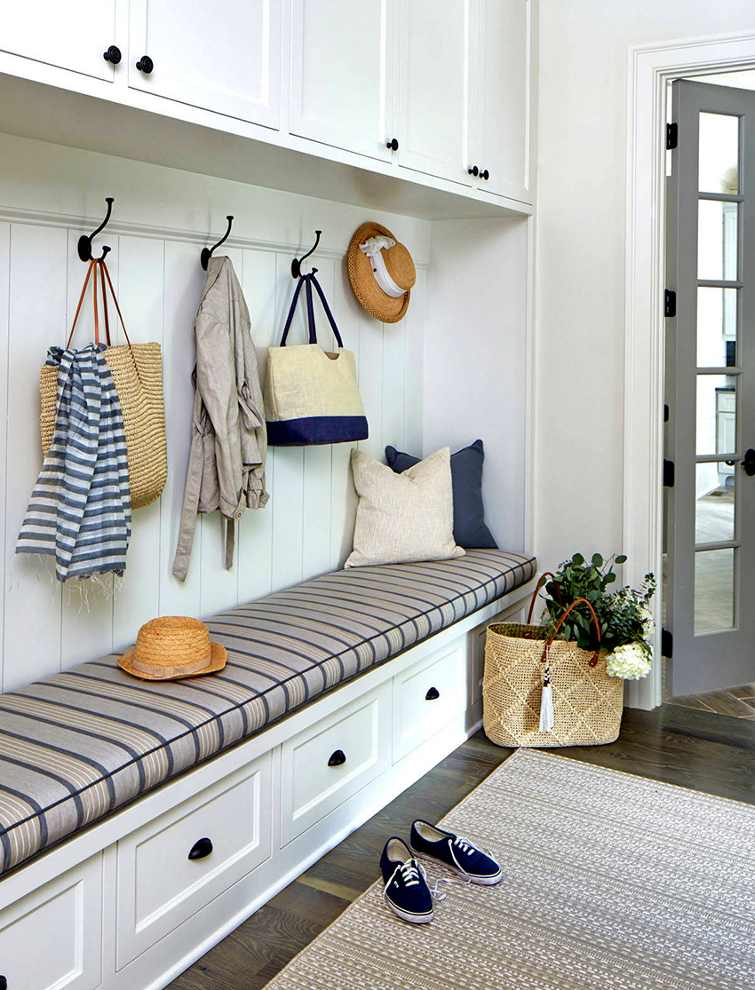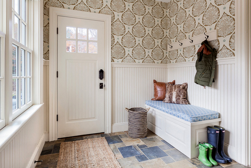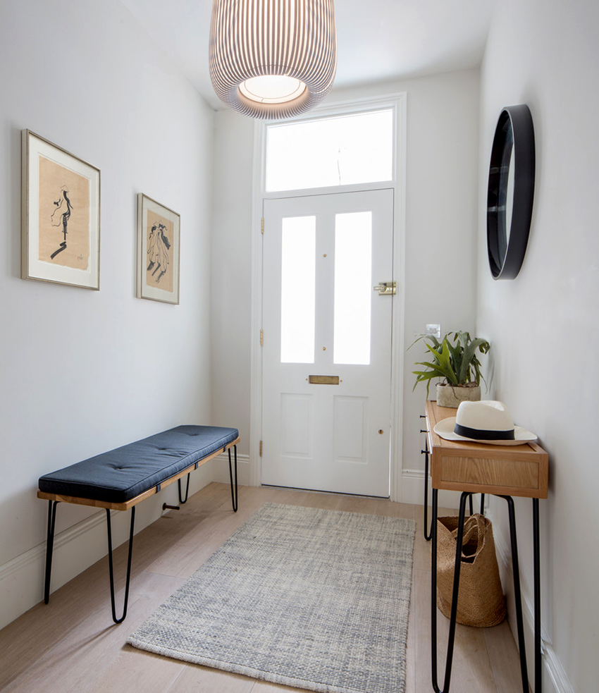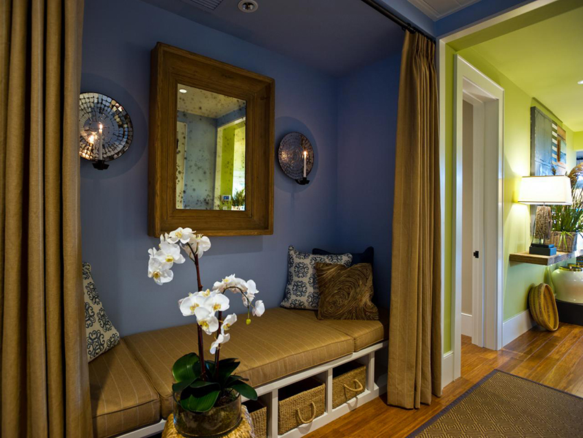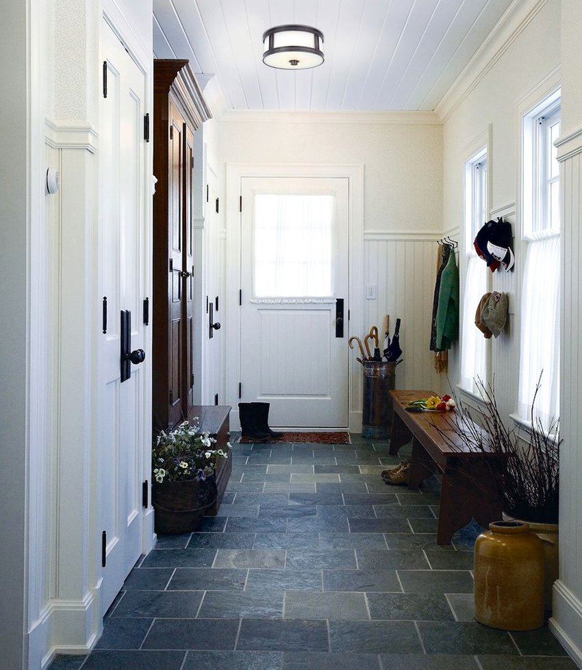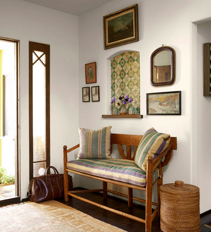 Thiết thực nhất là sản phẩm có vải bọc tối màu.Tuy nhiên, một chiếc ghế dài màu trắng ở hành lang sẽ tạo thêm sự ấm cúng trong phòng, mở rộng nó về mặt thị giác. Nó trông sẽ bớt cồng kềnh hơn, rất hữu ích cho những hành lang nhỏ.