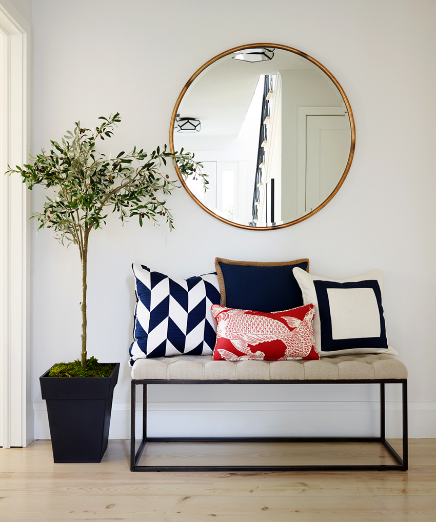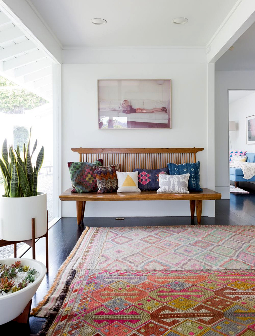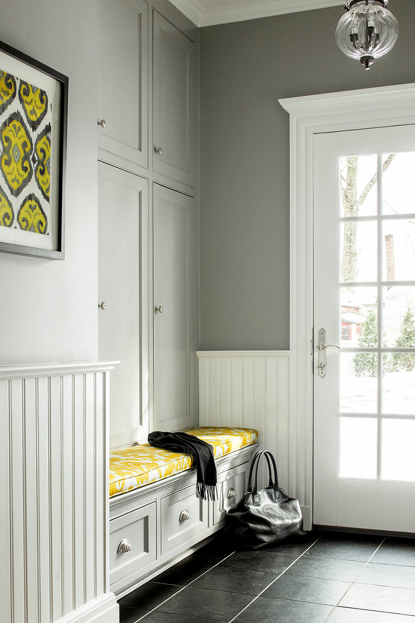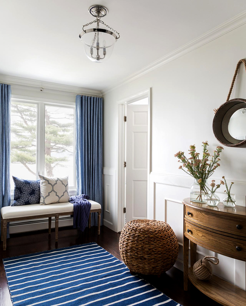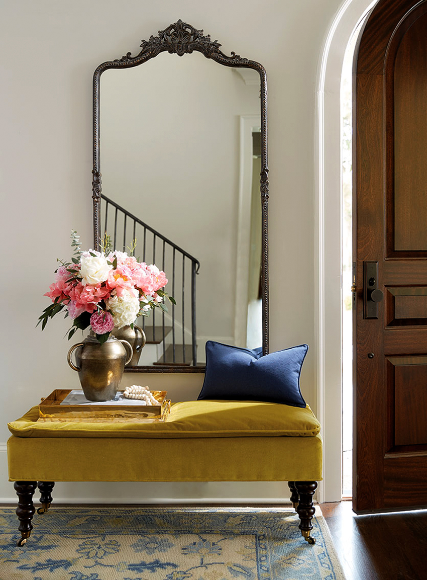 Thiết thực nhất là sản phẩm có vải bọc tối màu.Tuy nhiên, một chiếc ghế dài màu trắng ở hành lang sẽ tạo thêm sự ấm cúng trong phòng, mở rộng nó về mặt thị giác. Nó trông sẽ bớt cồng kềnh hơn, rất hữu ích cho những hành lang nhỏ.