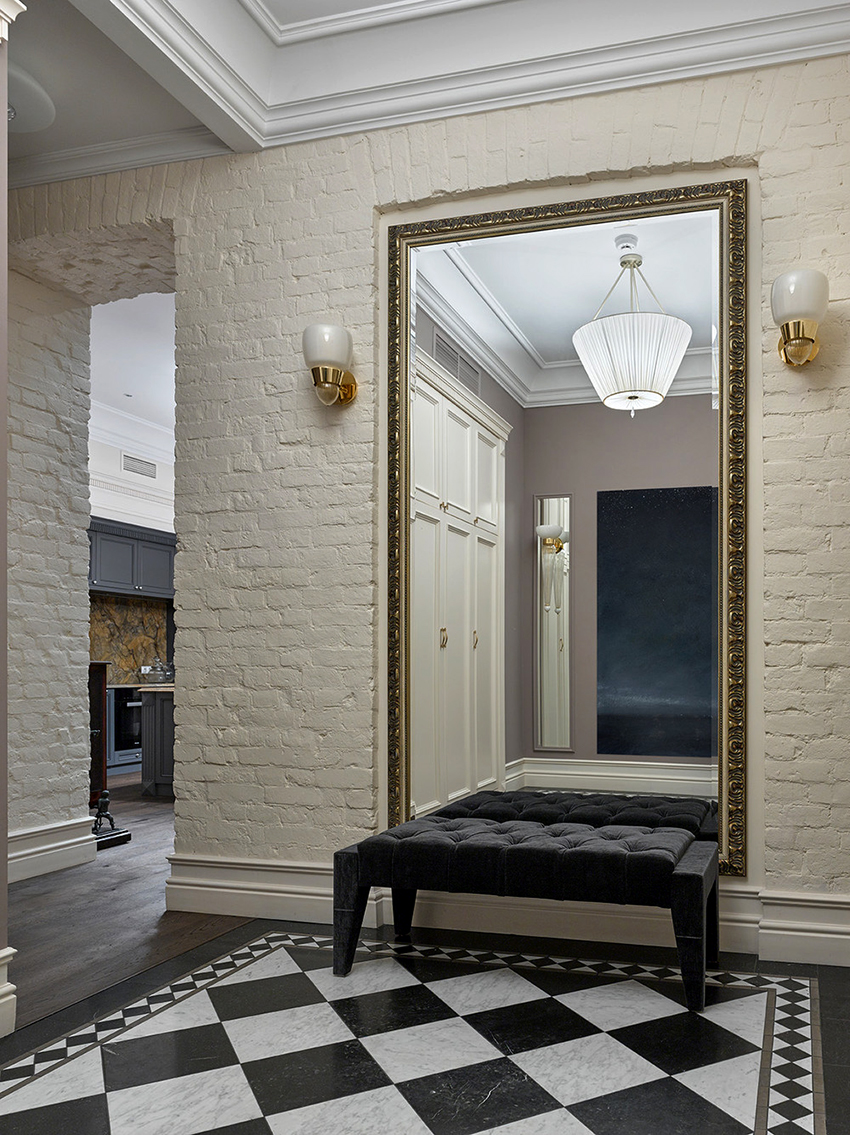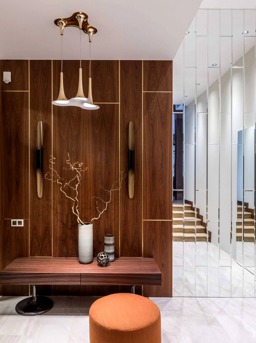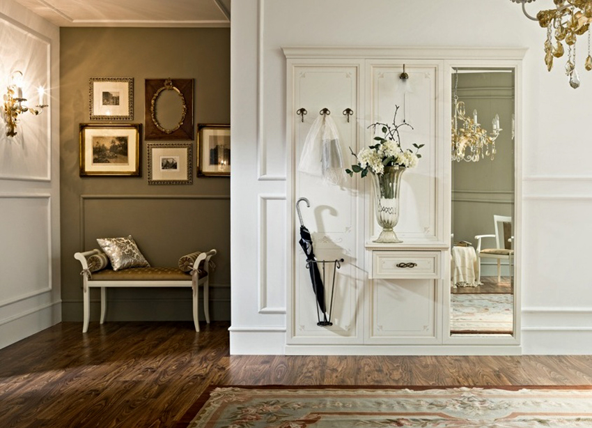 Có những bàn tiệc kết hợp cho hành lang, nơi tủ, hốc, giá, gương, kệ và giá đỡ theo các cách hiểu khác nhau được kết hợp trong một thiết kế duy nhất.