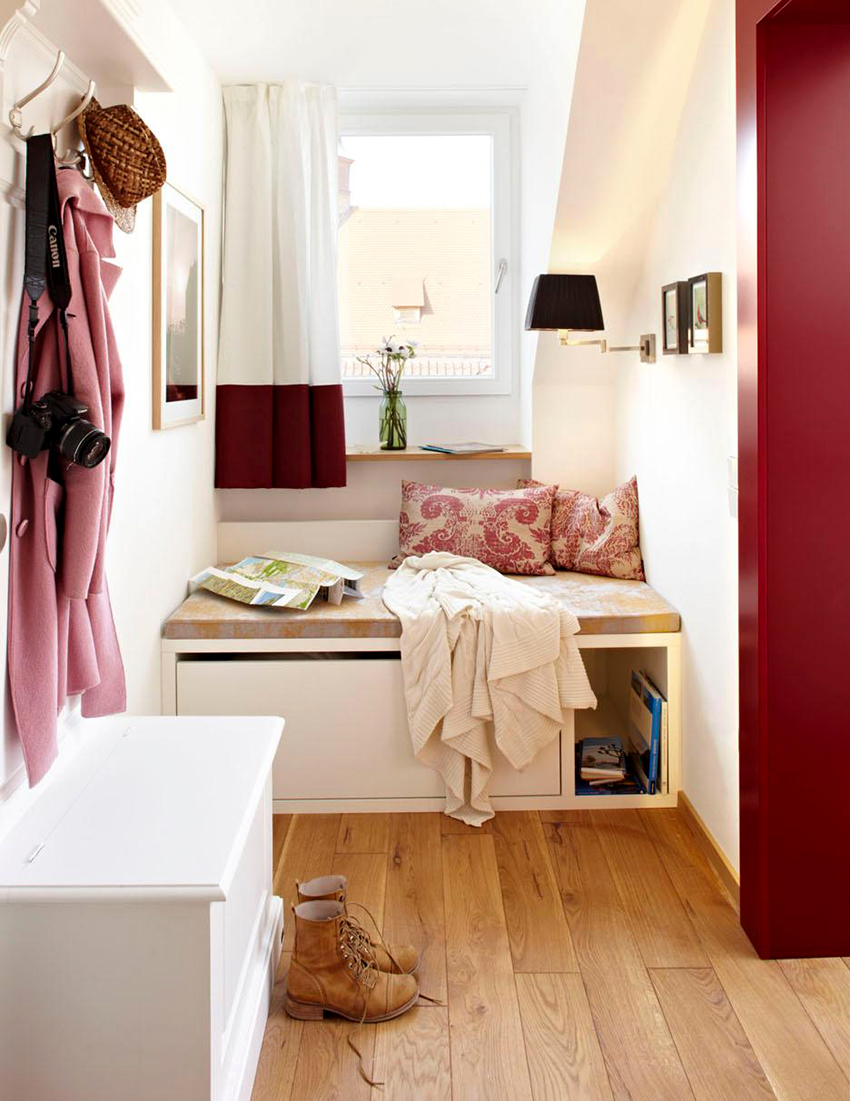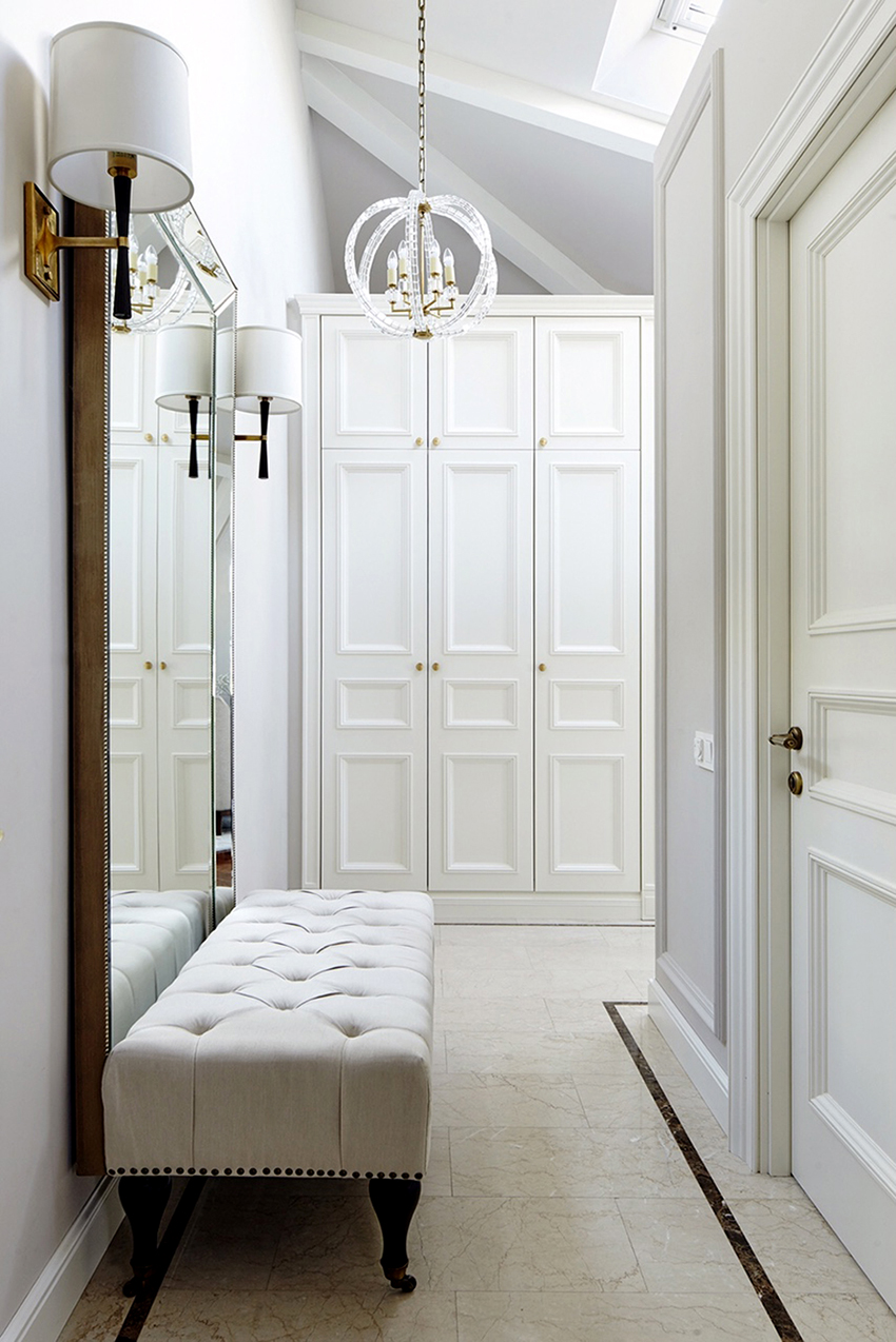 Tùy thuộc vào kích thước của hành lang, bạn có thể lắp đặt một phiên bản của băng ghế không chỉ có chiều cao mong muốn mà còn cả kích thước