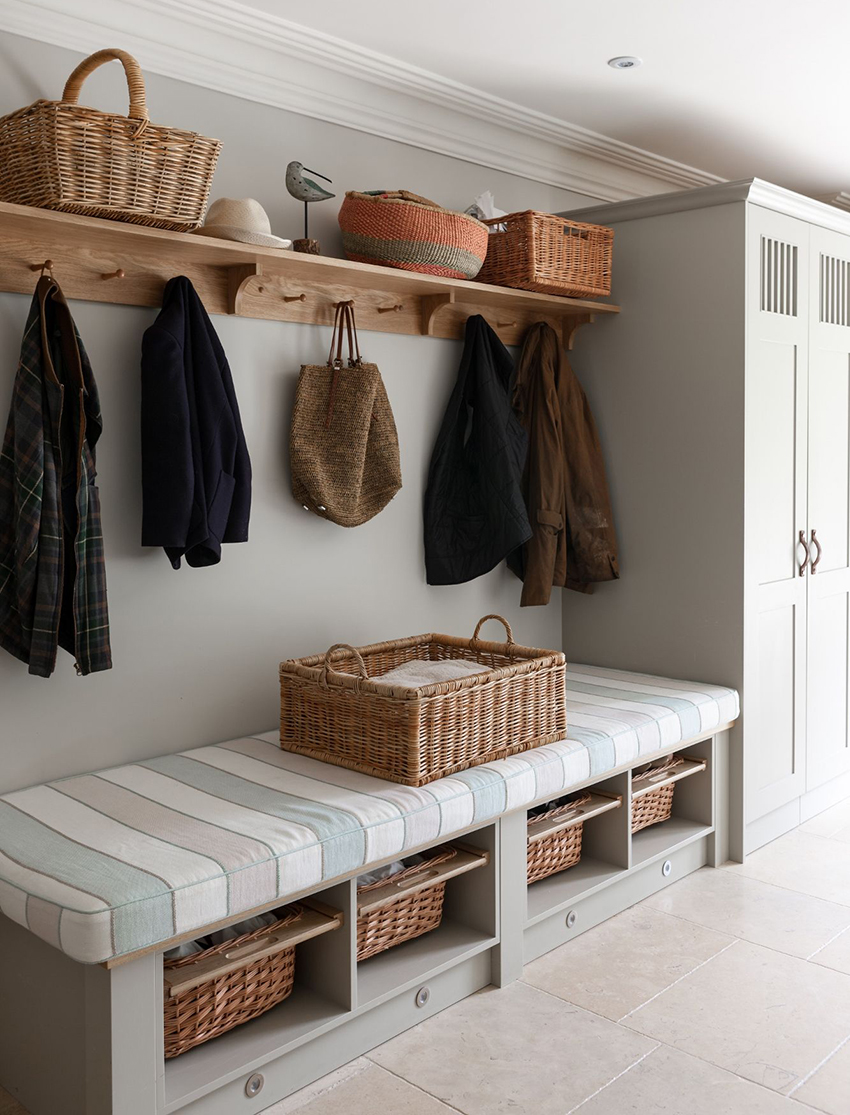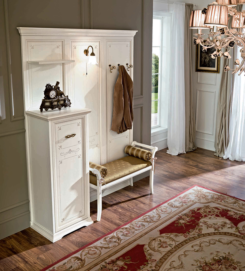 Những người mẫu có lưng rèn cao với móc để quần áo trông thật ngoạn mục. Có giá để giày dép dưới yên xe. Phía trên có thể có lửng lưới để đựng mũ, khăn quàng cổ.