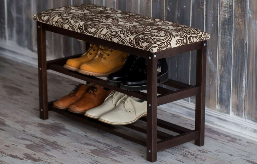 Ghế dài hành lang bằng gỗ có kệ để giày thường có chạm khắc cổ điển hoặc tinh xảo ở mặt sau, hai bên hoặc tay vịn của sản phẩm. Những thiết kế như vậy phù hợp với bất kỳ nội thất nào của căn phòng, tăng thêm đáng kể sự ấm cúng và ấm cúng cho nó.