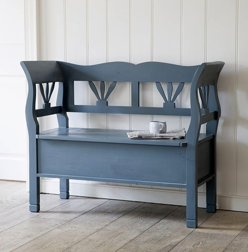 Ghế dài có hộp đựng đồ, có hình tròn, trông sẽ rất quý phái và đẹp mắt. Về ngoại hình, các sản phẩm giống như những chiếc túi nhỏ. Cấu trúc được đệm hoàn toàn. Dưới nắp trên, đóng vai trò như một chỗ ngồi, có một ngăn chứa đồ. Không nên đặt giày ở đây vì không có kệ chuyên dụng.