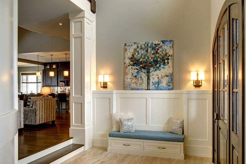 Một môi trường thoải mái trong hành lang phát triển không chỉ do thiết kế thẩm mỹ của các yếu tố trong phòng, mà còn do đồ nội thất và phụ kiện được lựa chọn chính xác. Điều mong muốn là mọi thứ trông trong một quần thể hài hòa duy nhất. Một chiếc ghế dài ở hành lang là cần thiết cũng như một tủ quần áo rộng rãi và một tấm gương lớn. Nó có thể có thiết kế, ngoại hình và kích thước khác nhau.