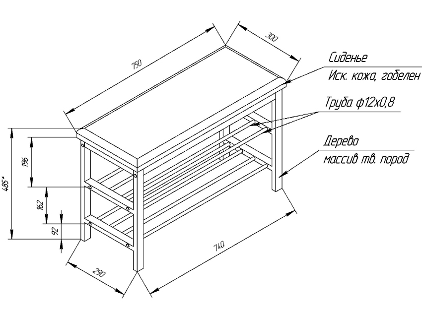 Thiết kế này là thực tế. Ngay cả với kích thước nhỏ, nó có thể phù hợp với hai người. Ghế băng là món đồ nội thất tiện nghi và cần thiết cho người già và trẻ em. Do chiều cao của sản phẩm (không quá 50 cm), bạn sẽ rất thuận tiện khi ngồi ở đây và cởi giày, vì chân được uốn cong một góc 90 độ.