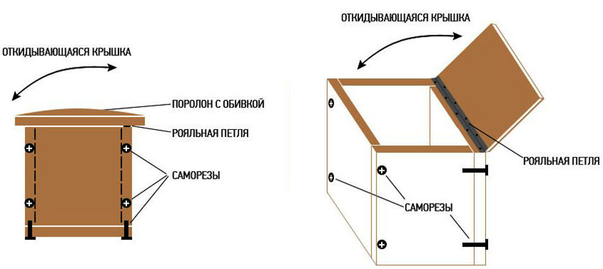 Trong trường hợp ghế dựa vào thành bên, theo bản phác thảo, tất cả các thành phần được chế tạo và lắp ráp trên các chốt. Vì mục đích này, các lỗ mù được khoan trước ở phần cuối của các bộ phận.