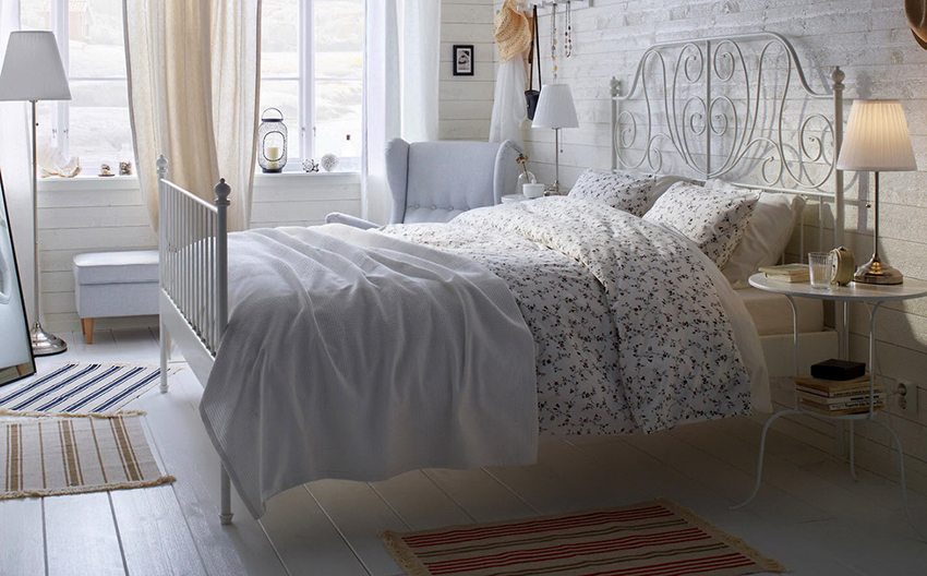 Giường rèn IKEA đặc biệt phổ biến. Chúng có thiết kế kín đáo, một số ít các yếu tố rèn và do đó, giá cả hợp lý. Giường đôi IKEA có thể được mua với giá 30-35 nghìn rúp.