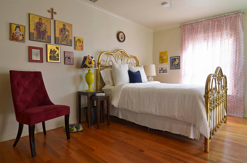 “Tôi có một phòng ngủ nhỏ, chỉ 12,7m2, nhưng tôi rất muốn mua một chiếc giường sắt rèn. Tôi chọn một mô hình đôi màu trắng, loại bỏ tủ quần áo cũ và làm một chiếc - được xây dựng vào toàn bộ bức tường. Bây giờ chúng tôi có một tủ quần áo, một chiếc giường và một chiếc bàn nhỏ đầu giường trong phòng ngủ của chúng tôi - đó là tất cả. Căn phòng bắt đầu có vẻ nhiều hơn. Đẹp, mọi thứ đều có màu sắc tươi sáng. Chiếc giường kim loại không làm căn phòng lộn xộn, bạn chỉ cần chọn đồ nội thất phù hợp. "