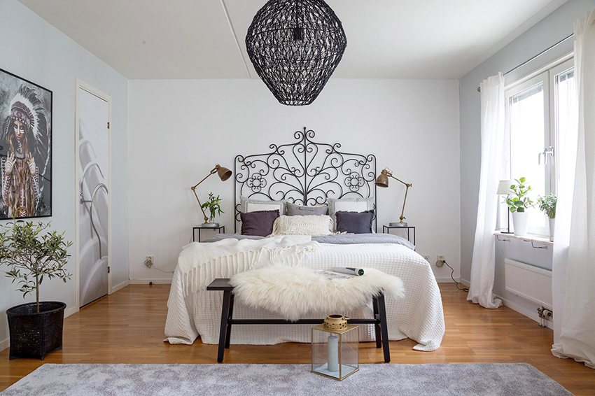 Nếu thiết kế của phòng ngủ có vẻ buồn tẻ, vô cảm, một chiếc giường sắt rèn màu trắng sẽ khắc phục tình hình.