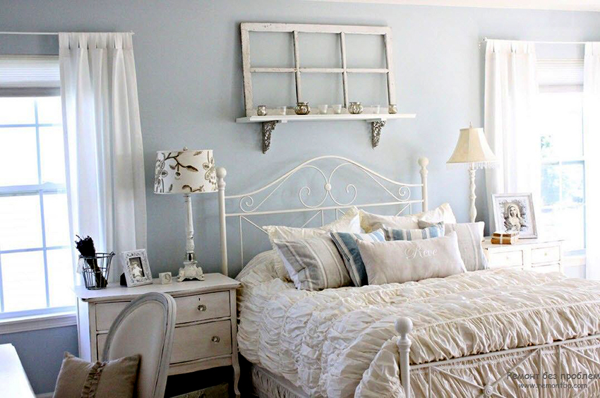 Một chiếc giường với đầu giường mềm mại trong khung sắt rèn trắng sẽ thu hút những người sành sỏi về phong cách đồng quê và hoài cổ. Những mô hình như vậy góp phần tạo ra một bầu không khí ấm cúng và thoải mái trong phòng ngủ. Cấu trúc bằng sắt rèn với khung bổ sung cho tán cây sẽ chỉ định một khu vực thân mật và riêng tư lãng mạn.