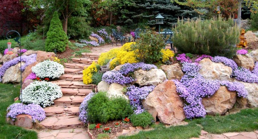 Thực vật cho một slide trên núi cao: tên và ảnh. Các loại hoa và cây bụi thích hợp, sơ đồ bố trí chúng. Các khuyến nghị cho việc xuống tàu và đăng ký. Mixborders trong thiết kế cảnh quan.