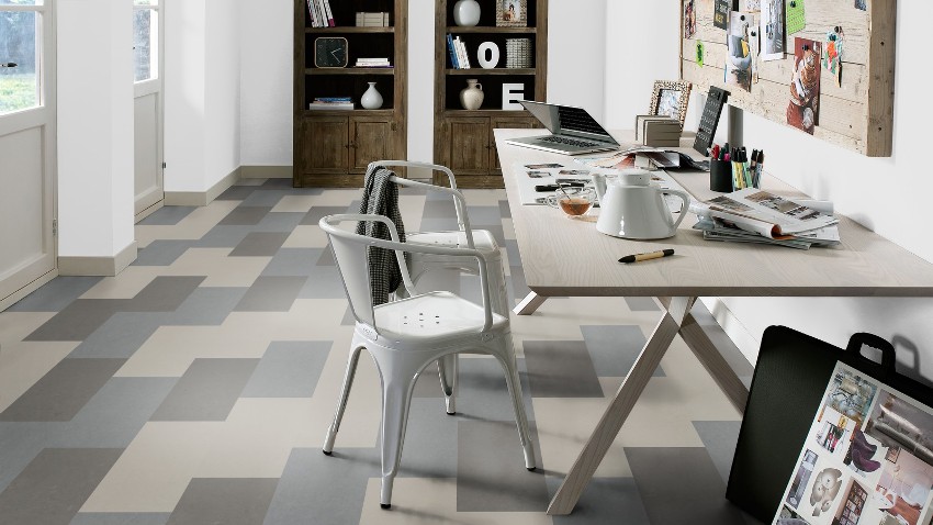 Vải sơn nhẹ trông đặc biệt đẹp và trang nhã trong bất kỳ nội thất nào. Hình ảnh minh chứng rõ ràng điều này. Lớp phủ này có thể được tìm thấy trong bộ sưu tập Tarkett Maestro đặc biệt. Các mô hình trong màu gỗ sồi tẩy trắng rất phổ biến trong loạt bài này.